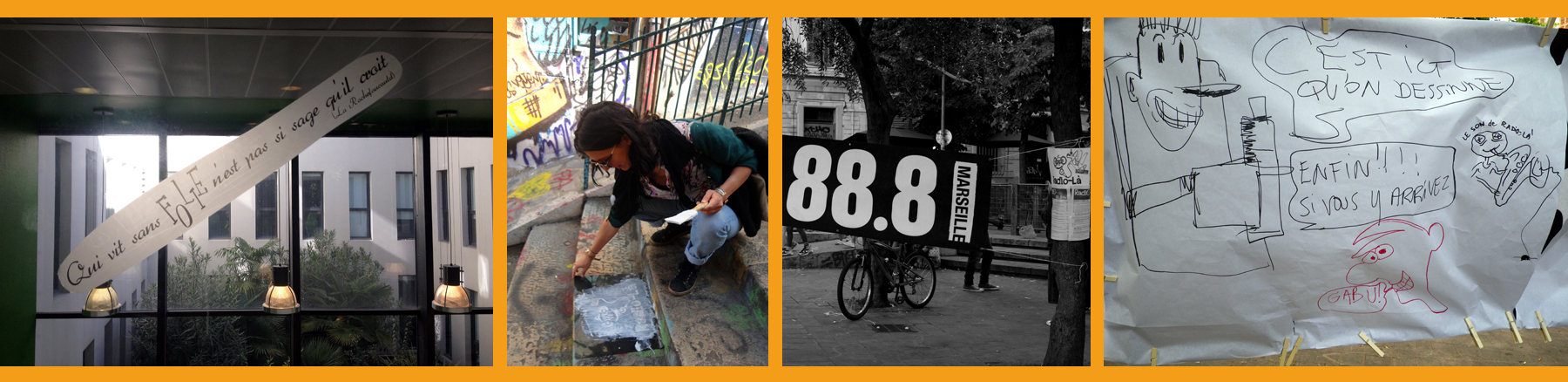 LE MATIN, C’EST TOUJOURS SUR LES ONDES 10h – La santé mentale, vers un bonheur sous contrôle Entretien avec Mathieu Bellahsen, psychiatre et auteur. 11h – Terrain de je(u) Entretien avec Emmanuel Vigier et Lionel Kasparian autour de « Terrain de je(u) », projet visuel et sonore qui réunit des personnes souffrant de troubles psychiatriques et vivant dans la rue. 12h – Kalamazoo Émission musicale du Dr. Zoom, spéciale folie 13h – De ci, de là Lectures à hautes voix d’usagers de la psychiatrie et musiques. D’autres sons sont à retrouver sur Quelle en est la raison ? -Un peu de vocabulaire… : pair-aidance Par Sonia -Le parc de la Moline Balade dans un lieu d’épanouissement, par André, Patrick et Jérôme -Le divan Un texte et une lecture de Marie-Ange. Réalisé par Emmanuel. L’APRÈS-MIDI, ON SE RETROUVE EN PUBLIC 14h – Habiter ? + The Nurses en live Émission et show case en public et en direct au Cours Julien Quand on vit avec des troubles psychiques, comment se loger, comment habiter ? Avec Un Chez Soi D’abord, le Marabout, l’Orée du Jour, ISATIS, la Fondation Abbé Pierre… Avec des explications et des témoignages. Et en live, The Nurses, groupe rock thérapeutique ! 16h – Trace d’Erre Lecture publique à l’Arthémuse, en direct à l’Arthémuse Des voix, des traces, des écrits, de patients, de soignants, de poètes. Un cadeau de l’atelier d’écriture du Pôle psychiatrique Baille. 18h – Apéro radiophonique En direct et en public au Cours Julien, on se retrouve pour se dire au revoir… Pour retourner au jeudi, c’est par ici, et au vendredi, c’est par là…